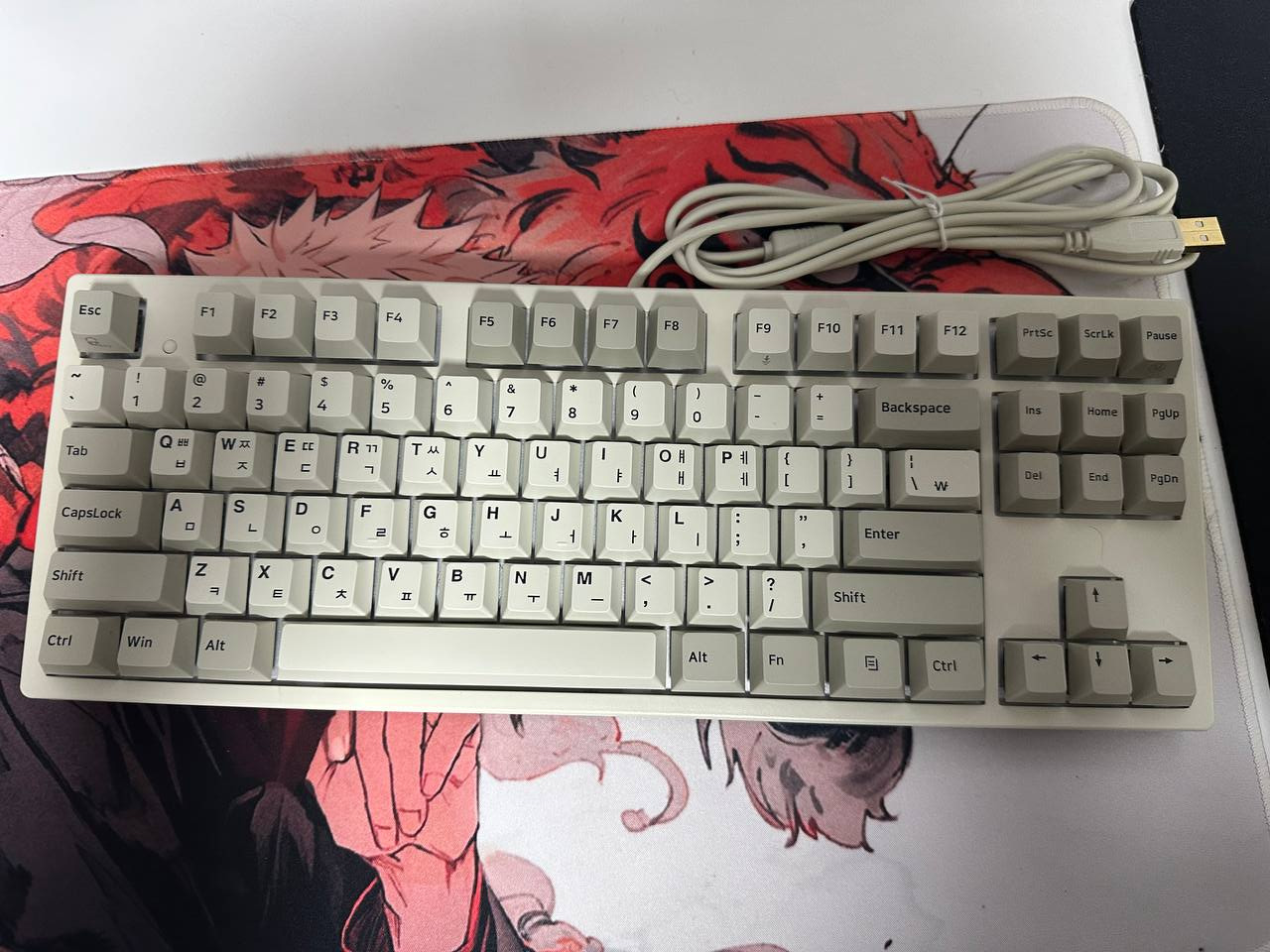물론 아쉬운 부분도 있었어요. 이 키보드가 유선 모델이라 케이블 정리가 약간 귀찮을 수 있어요. 요즘 무선 키보드도 많이 나온 덕에, 깔끔하게 쓸 수 있는 무선 옵션이 추가되면 더 좋았을 것 같다는 생각을 했네요. 그래도 연결이 안정적이라는 장점이 있어서 기기와 연결 후 입력 지연도 없고, 중요한 작업 도중에 끊기거나 하는 문제가 없다는 점에서는 유선 모델도 나름의 장점이 있는 것 같아요.