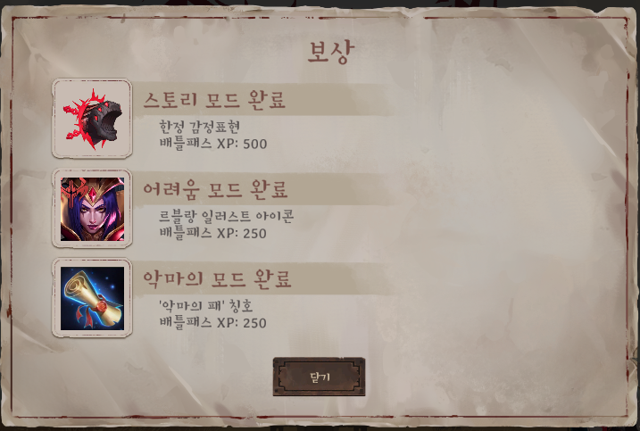 - 어려움 모드 도전 시 추가 인장 8개가 필요하다.