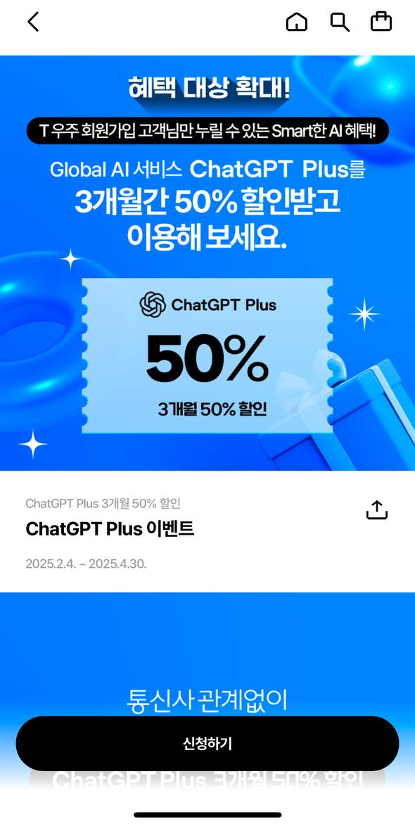 현재 T우주패스라는 앱에서 할인행사를 진행하고 있습니다. 위 이벤트는 4월 30일까지 진행하고 있습니다.