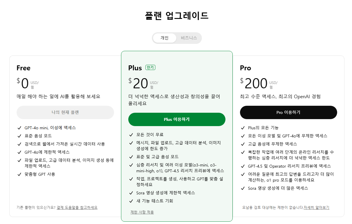 앞으로도 OpenAI가 더 다양한 구독 옵션을 제공할 가능성이 있으니, 공식 블로그나 알림을 꾸준히 체크해보시는 것을 추천드립니다.